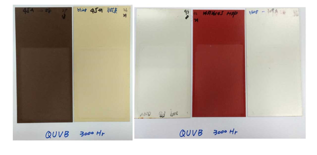 經過3000小時QUVB試驗后,45微米氟碳產品涂層粉化仍保 持0級。