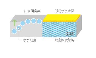 具有優異的抗沾污性能,能抵抗污染物滲透到漆膜內。優異的親水性能