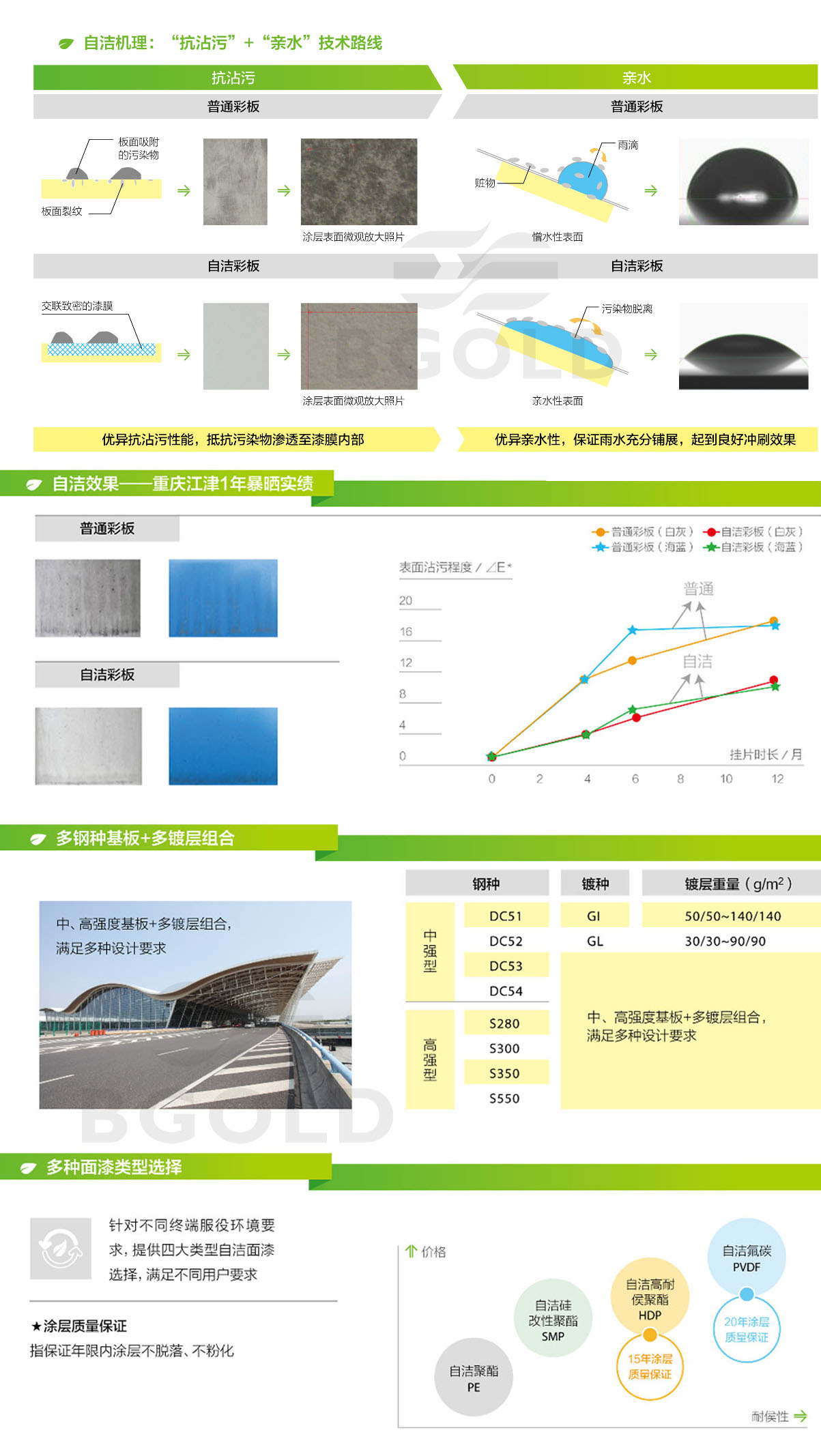 鋼專門針對污染地區建筑用材開發的一系列具有自我清潔功能的彩涂鋼